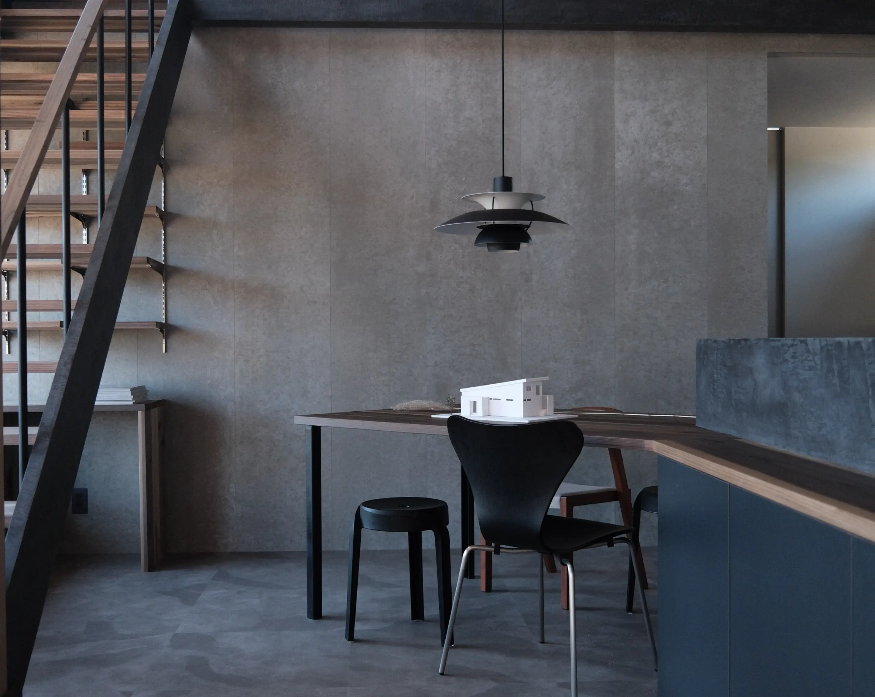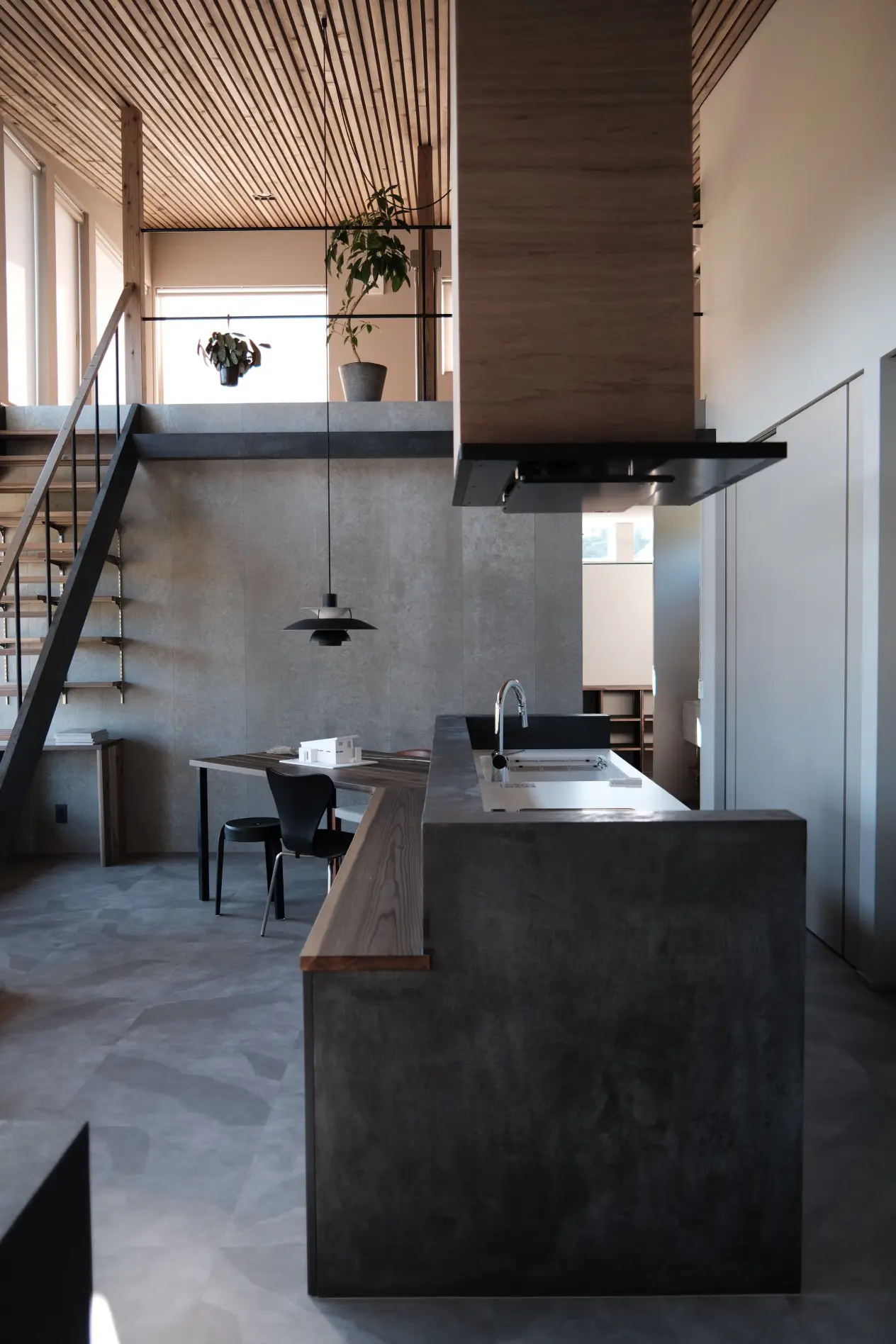 モールテックスの造作キッチンをはじめ、フルオーダーのスケルトン階段やソファ、上質なウッドデッキ、機能美あふれる棚の数々。熟練の職人が一つ一つ丁寧に仕上げた造作が住まいに唯一無二の価値を添えます