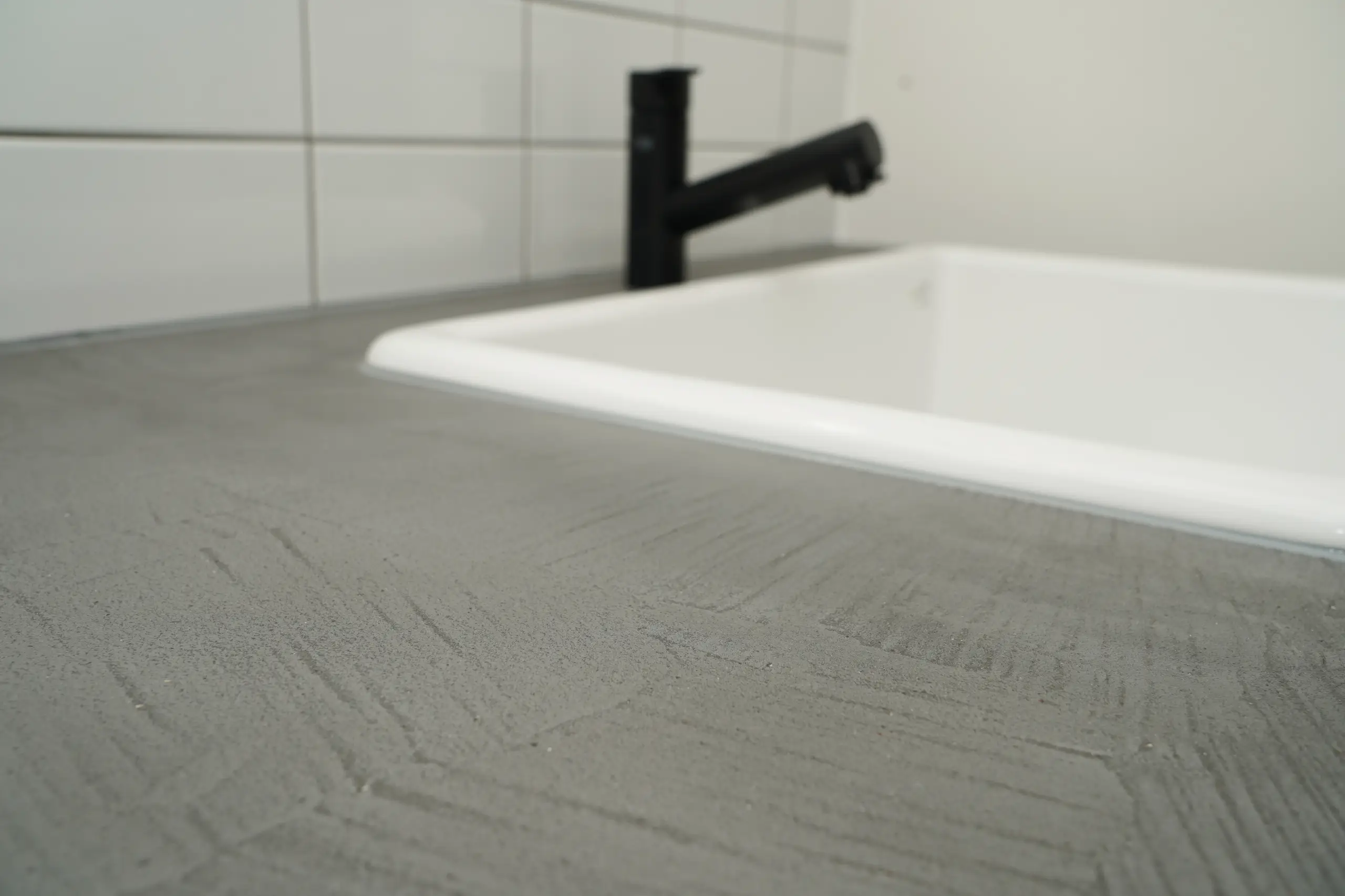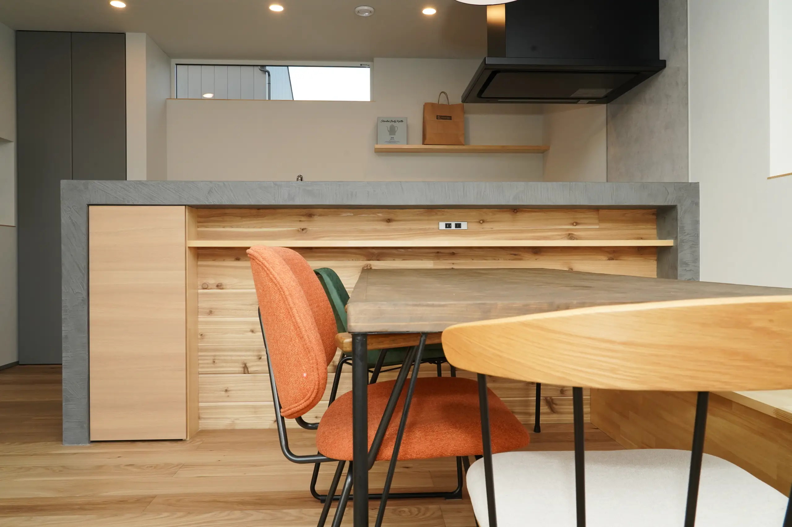 施主様と一緒に作り上げたモールテックスの造作洗面やキッチン腰壁など仕上がりだけでなく、その過程も思い出に残る住まいづくりとなりました。